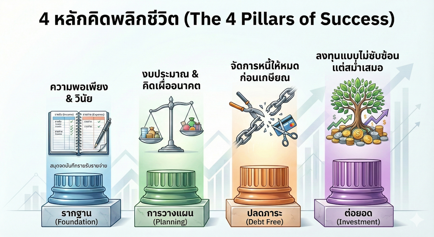 4 หลักคิดพลิกชีวิตมนุษย์เงินเดือน จากติดหนี้สู่เกษียณที่มั่นคง