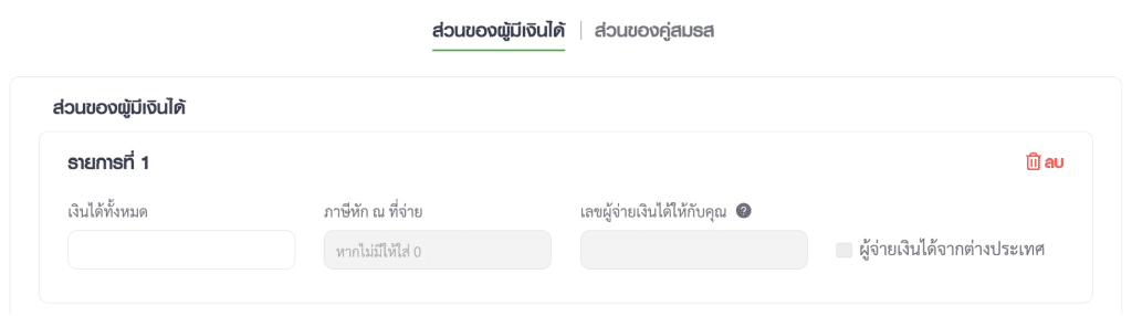 - คู่สมรสมีเงินได้ 40(1) – (8) แต่ยื่นเฉพาะ 40(1) : ยื่นรวมบางส่วนในชื่อเรา แต่คู่สมรสแยกยื่น 40(1) ของคู่สมรส